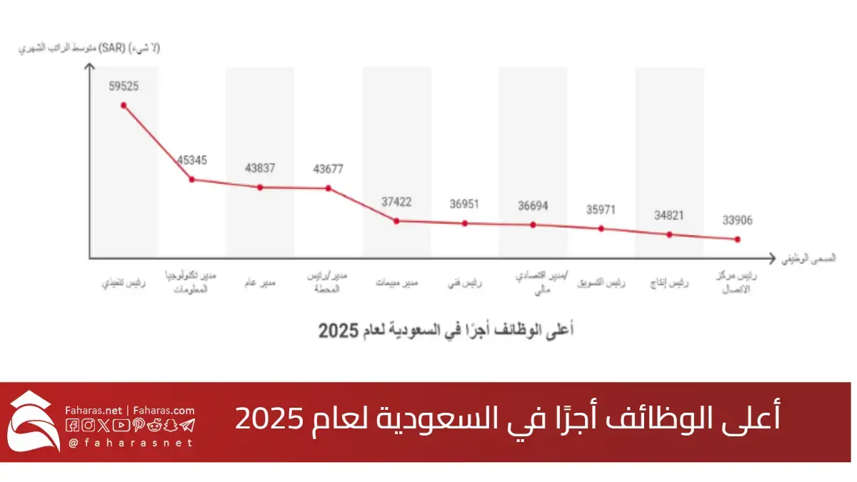 يظهر الجدول التالي قائمة بأعلى الوظائف أجرًا في السعودية لعام 2025، بالريال السعودي (SAR)، ذلك حسب الخبرة والمهنة: