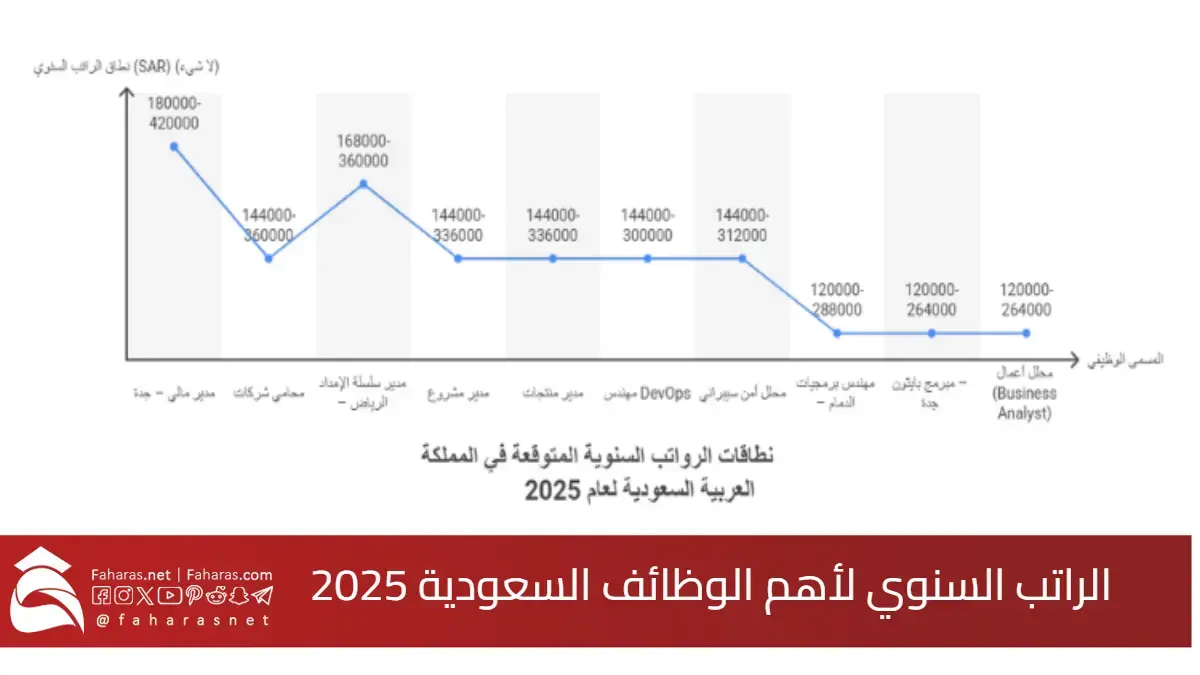 يوضح الجدول التالي “تقرير شامل” حول الحد الأدنى، الحد الأعلى، والراتب السنوي المتوقع لأهم الوظائف في المملكة لعام 2025: